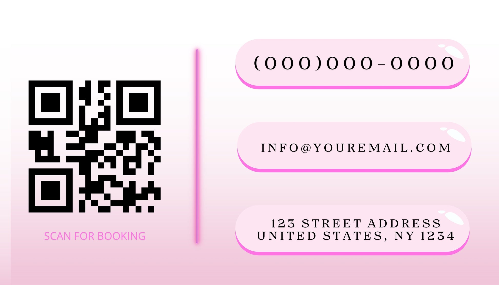 - Professional Layout: Includes space for your headshot or logo, contact info, and a QR code for easy booking
