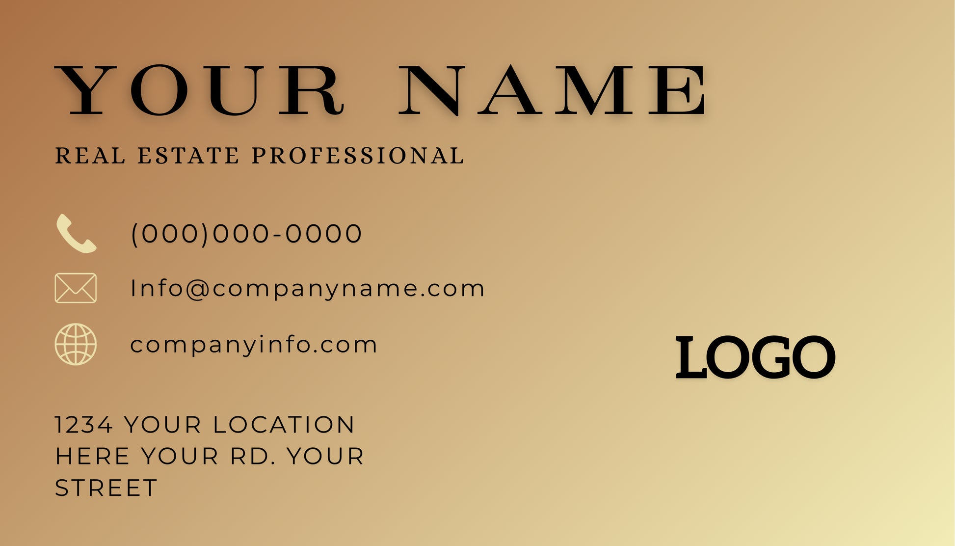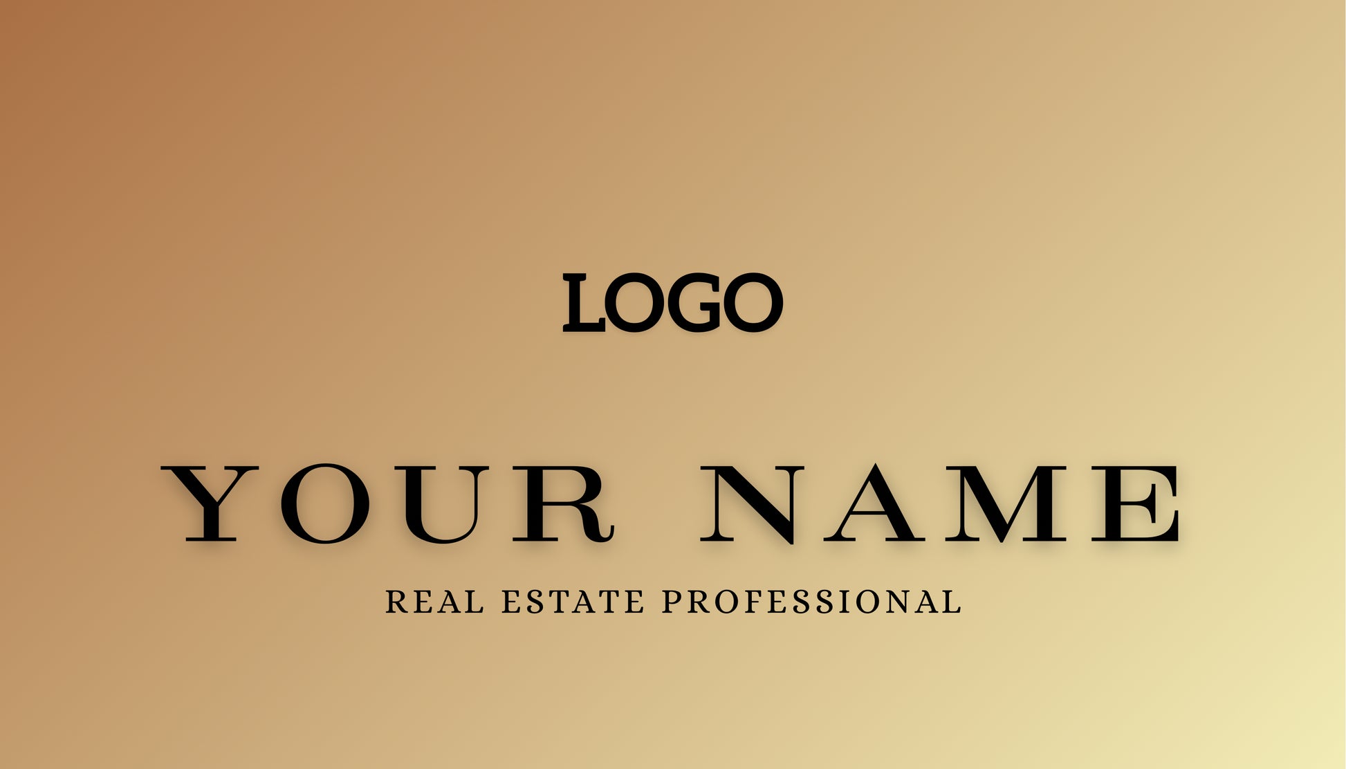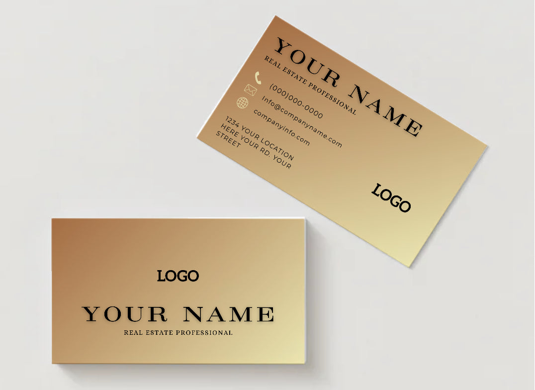 Stand out with this luxurious gold gradient real estate business card design. Perfect for real estate professionals who want to leave a lasting impression, this elegant and modern template can be fully customized with your personal details.